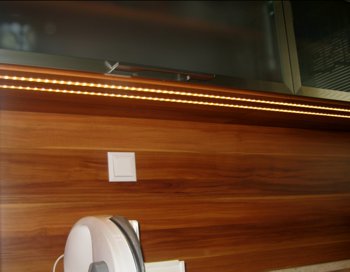 Interiérový nábytek lze doplnit dekorativním osvětlením v podobě flexibilních samolepících světelných pásků s LED diodami v požadovaných barvách světla. Jedná se o světelný doplněk pro široké uplatnění osvětlení vnitřního prostoru jako jsou kuchyňské linky, schodiště, vstupní dveře, bary, pulty, stoly, pro zvýraznění detailů interiérů, přisvícení v koupelnách sprch, van, zcadel a jiných aplikací.