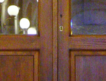 Historické dveře 2 tvoří výraznou dominantu v této části historického objektu. Jejich dvě křídla o třech polích mají horní dvě ploe průhledně prosklené. Rovněž jsou prosklené obě pole nade dveřmi. Bohaté zdobení včetně kování je typické právě pro historické dveře, i když jsou nová a v rámci rekonstrukce zabudovaná.