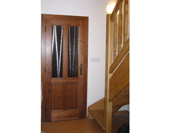 Obložkové vnitřní dveře 2 podobného obsahu i barev. Vhodné použití v rodinných domech, chatách, chalupách, v novostavbách, při rekonstrukcích apod. Skleněná výplň prosvětluje například tmavou chodbu za dveřmi.