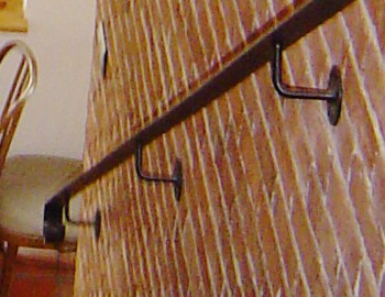 Světlé barvy dřevěného rovného schodiště 1 s dřevěným a ocelovým zábradlím výborně ladí s cihelným obkladem zdi a keramickou dlažbou v obou patrech. Zajímavě je řešení prvních dvou dolních schodů s nástupem ze dvou stran a malou podestou. Otevřená chodba do schodiště s dřevěným zábradlím v horním patře poskytuje neobvyklé pohledy.