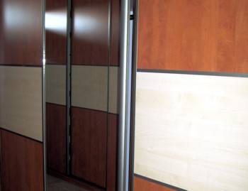 Vestavěná skříň 2 má jednotlivá posuvná křídla o třech polích nad sebou ve dvou barevných provedeních. Mezi křídly vyplňuje plochu rozměrné zrcadlo, které opticky zvětšuje prostor. Pokud vestavěná skříň obsahuje strojení, tak lze v zrcadle vidět oděv na člověku, což je velmi praktické. Větší důležitost křídlům dodávají obvodové lišty ve vhodném barevném provedení i profilu.